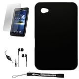 Black Armor Hard Cover Case / 2 Piece Snap On Feature for New Samsung Galaxy Tab Tablet Device + Includes a Durable Screen Protector + Includes a Crystal Clear High Quality HD Noise Filter Ear Buds