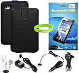 CrazyOnDigital 7 Item Flip Black Leather Case Accessory Bundle for Samsung Galaxy Tab P1000 Tablet. CrazyOnDigital Brand Package