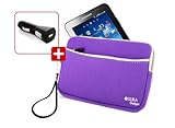 DURAGADGET Water Resistant Luxury Purple Neoprene Zip Case/Cover With Zip Accessory Pocket For New Samsung P1000 Galaxy Tab + CAR CHARGER ADAPTOR